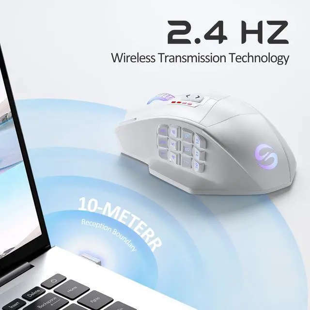 2. Dual Modes with Ultra-Speed Wireless TechnologyUtechSmart VENUS Pro RGB Wireless MMO Gaming Mouse is a new revolution of RGB MMO gaming mouse. It has 2.4 GHz data transmission technology with Mini signal receiver(Nano) and stable 1. 5m wire transmission that provides professional-level performance. VENUS Pro overcomes the traditional limitation of wireless latency and connectivity which offers stable and fast data transmission with 10-meter reception boundary. You can take this mouse anywhere!