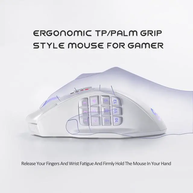 5. Ergonomic Design Ensures Your ComfortableGreat as a real mouse stuck in your hand. The UtechSmart Venus Pro Wireless RGB MMO gaming mouse is flawlessly designed to alleviate wrist fatigue while being able to firmly hold the mouse in your hand. The grinding coating on the mouse surface increases the friction between your hand and the mouse. Grinding coating also provides gamer a extra comfortable sweat-resistant and skin-friendly gaming mouse.
