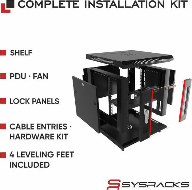Sysracks Network Data Cabinet - 9U Rack Mount - Wall Mount IT Rack - Locking - Server Rack - 24-Inch deep Data Rack - Server Cabinet with POWERBAR/Fan/Shelf/FEET/for Servers - A/V Equipment