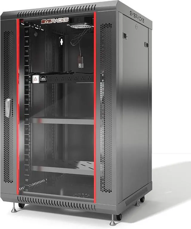 Sysracks 22U Wall Mount Server Rack Cabinet, 19 Locking Network Rack, 24 Deep, Glass Door, with Fan, PDU and Shelf