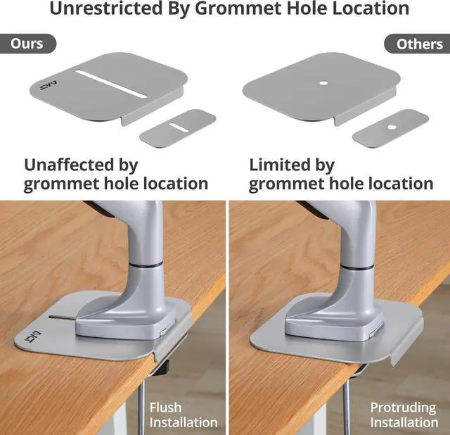 • ELIMINATES DESK STRESS - Helps reduce overall load and stress along the edge of the desk with greater compatibility for grommet mount meaning heavier c-clamp parts are not needed.