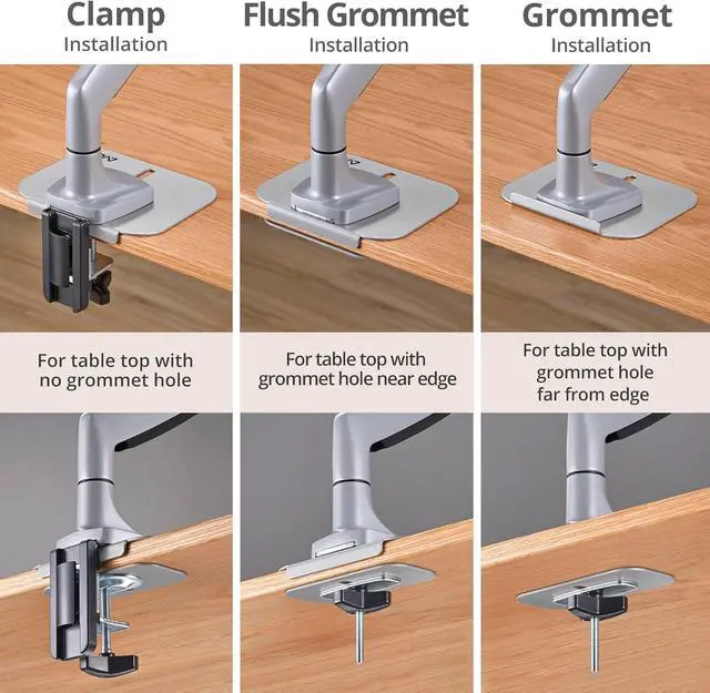 6. ELIMINATES DESK STRESS - Helps reduce overall load and stress along the edge of the desk with greater compatibility for grommet mount meaning heavier c-clamp parts are not needed.