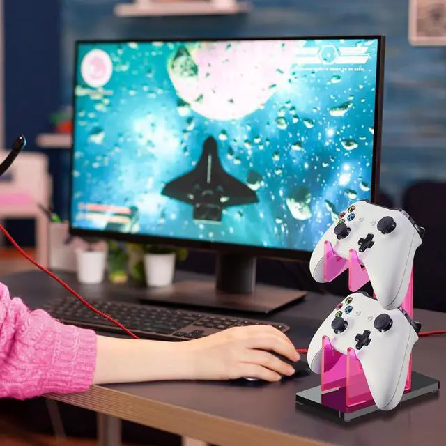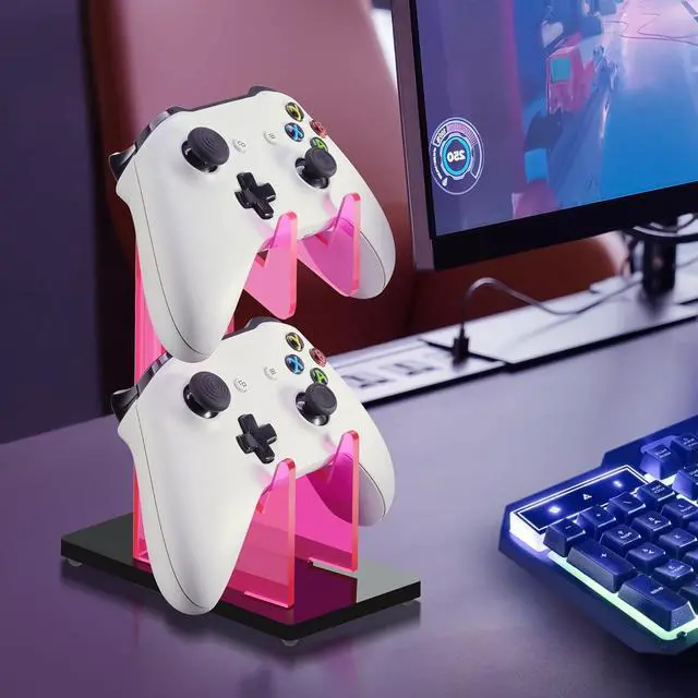 Unique DesignThe controller bracket is made of high-quality acrylic with a unique colorful design, crystal clear, sturdy, and fall resistant. It enhances the appearance of the controller and is an excellent way to showcase all your controllers. There are charging cable holes on the back for use at any moment. The space-saving design can centralize your gaming accessories to save more game area space and keep the desktop tidy.