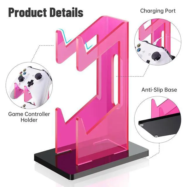NiHome Rose Pink Acrylic 2-Tier Universal Game Controller Headset Holder Stand for PS5 Xbox ONE Switch Colorful Controller Stand Gaming Accessories Anti-Slip Stable Acrylic Clear Headphone Holder