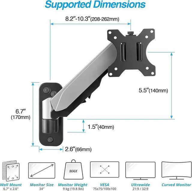 DISCOVER PRODUCTIVE SELF - After locking a few screws, the monitor wall mount instantly improve working posture, increase workspace, and hide cables.