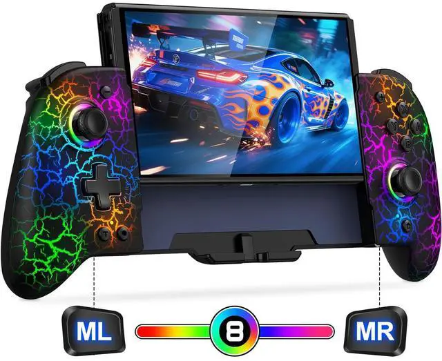 Gammeefy Switch Controller for Nintendo Switch/Switch OLED, (No Drift, No Deadzone) Hall Effect Joystick Wireless Switch Joypad With 9 Lights Color, One-Piece Switch Remote with Turbo Programming