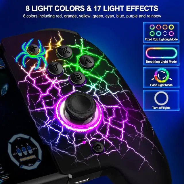 17 Lighting Effects & 1000mAh Battery: This Switch controllers features 4 lighting modes: LED, Flash, Breathing, and Cyclic Breathing, as well as 8 lighting colors and 19 lighting effects. You can select the background lighting of the switch controller based on your personal preference. The switch pro controller includes a high-capacity 1000mAh battery, which is twice the capacity of a regular Joy-C*n. It provides up to 10 hours of gameplay in light mode