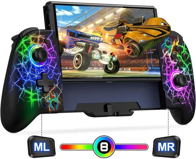 Gammeefy Hall Effect Switch Controller for Nintendo Switch/OLED, Wireless Switch Controller With 9 Lights Color, One-Piece Switch Joypad for Those Who Prefer Handheld Mode