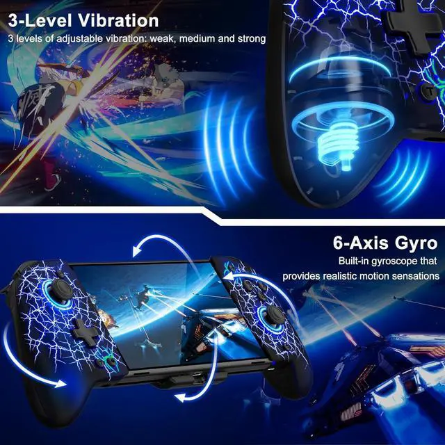 Adjustable Vibration & Motion Control: This Switch controller with 3 levels of adjustable vibration, which can provide vibration for compatible games and provide you with a more realistic gaming experience. Sensitive motion control, fast response without delay, 6-axis gyro for gravity sensing, suitable for switch motion sensing games, such as Zelda, Mario Kart 8 Deluxe, etc. Provides a compelling and immersive gaming experience