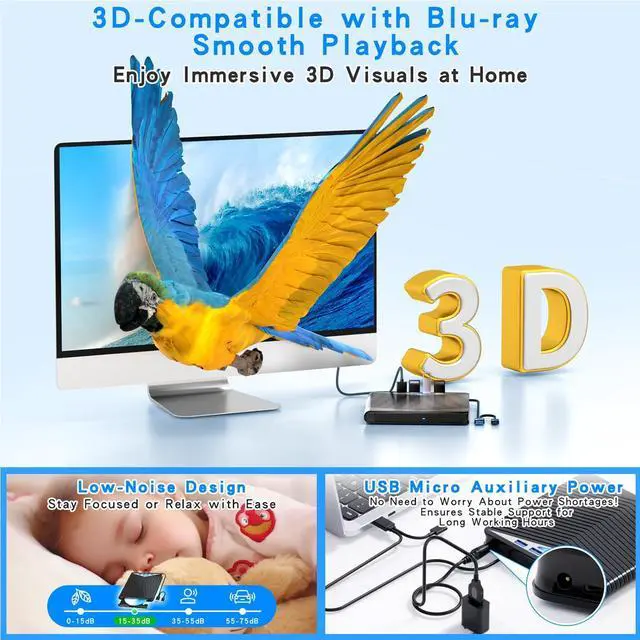 Space-Saving Design, PortableThis Blu-ray player features a compact, slim design with a convenient cable storage area on the bottom, making it easy to place in offices or at home. Its lightweight design, about 400g, makes it easy to carry, ideal for use during travel or business trips.