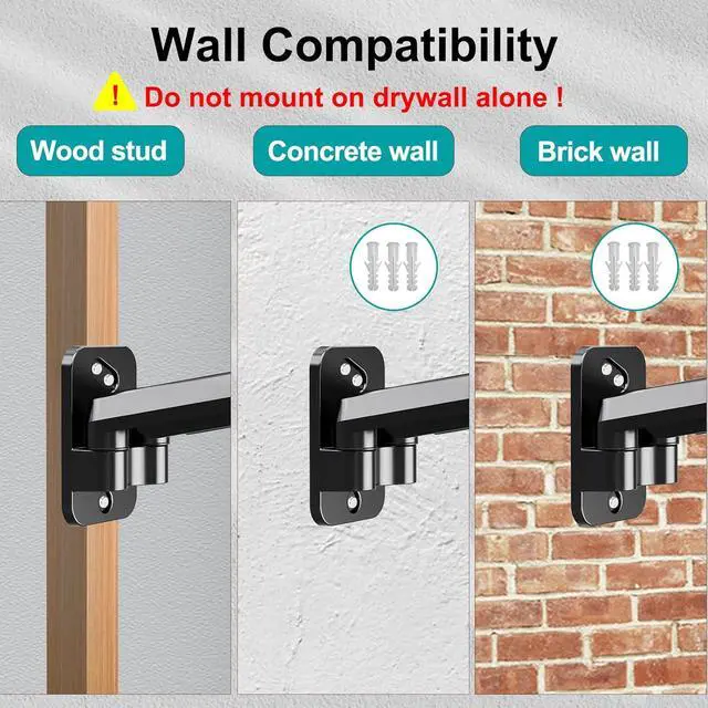 Easy Assembly- This dual wall monitor mount fits both wood stud and solid concrete walls. ' . When installing this monitor VESA mount on the wood stud wall, Please dont use the anchor in drywall or wood. While installing on the solid concrete wall, the provided anchor is needed. Comes with all necessary hardware and instructions, this wall monitor mount can be installed within 10 minutes.