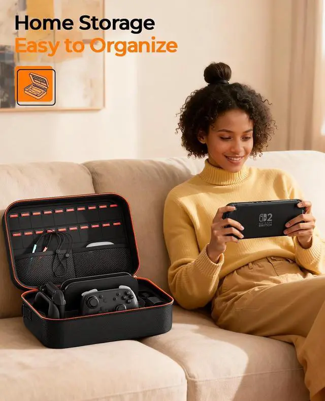 Deluxe Switch 2 Carrying Case: This Switch 2 case fits the Switch 2 accessories you need in one organized spot, perfect for both home storage and on-the-go travel