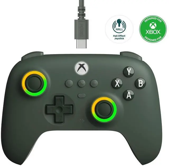 8BitDo Ultimate C Wired Controller for Xbox with Hall Effect Joysticks and Triggers, RGB Lighting Fire Ring, Compatible with Xbox Series X|S, Xbox One, Windows 10/11- Officially Licensed (Dark Green)