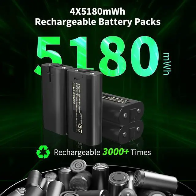 [4 X 5180 mWh Rechargeable Battery Packs]: Portable design for xbox one controller battery charger station comes with four 5180mWh (1400mAh) rechargeable batteries, the charger dock with adjustable 7 RGB night lights when charging, specially designed for Xbox Series X, Xbox Series S, Xbox One, Xbox One S, Xbox One X, Xbox One Elite controller.