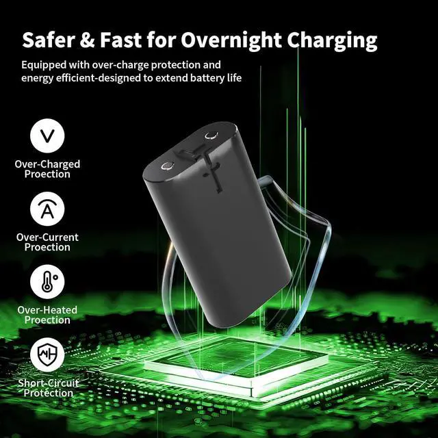 [ Safer Charging for Xbox Controller Battery Pack ]: The charging station has a built-in advanced power IC chip. It has over-charged/Over-Current/Over-Heated/ Short-Circuit protection to extend the battery life and make battery to be recharged up to 3000 times. No more worries about your battery packs for charging over-night.