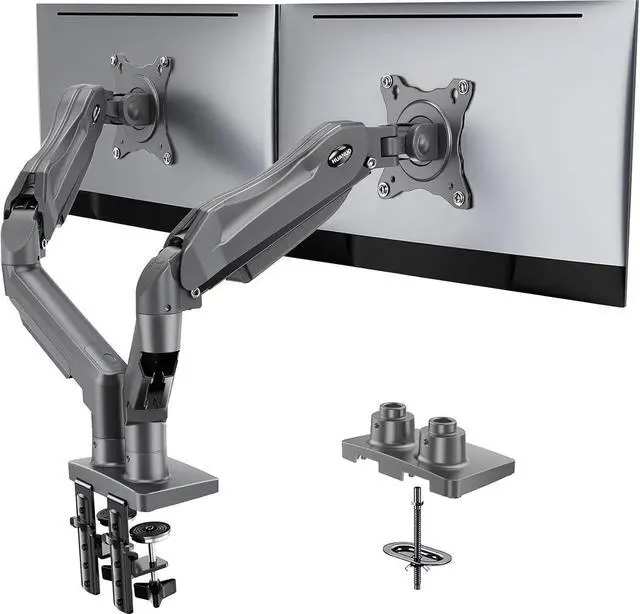 HUANUO Dual Monitor Stand, Fully Adjustable Monitor Desk Mount for 1332 Computer Screens, Full Motion VESA 75x75/100x100 with C-Clamp & Grommet Base, Each Arm Holds 4.4 to 19.8 lbs -Grey
