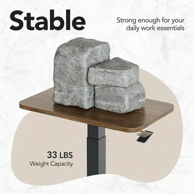 Sturdy & Durable: The scratch-resistant laminate desktop is easy to clean. Supported by a sturdy metal H-shaped base, this adjustable desk boasts a strong 33 lb (15 kg) weight capacity.