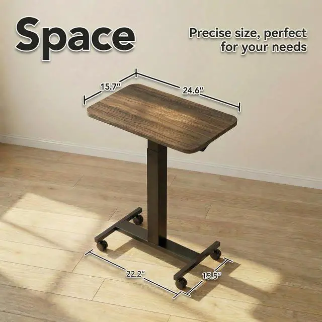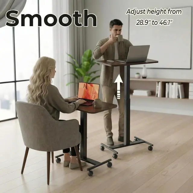 Sit Stand Desk: The height of this small standing desk can be freely set between 28.9" to 46.1" , allowing you to effortlessly switch between sitting and standing for a healthier workstyle. Engineered with a robust cold-rolled steel frame, this mobile desk offers a reliable 15kg (33 lbs) weight capacity, confidently supporting your work or study essentials.