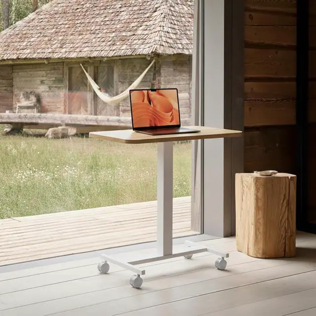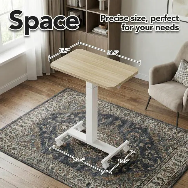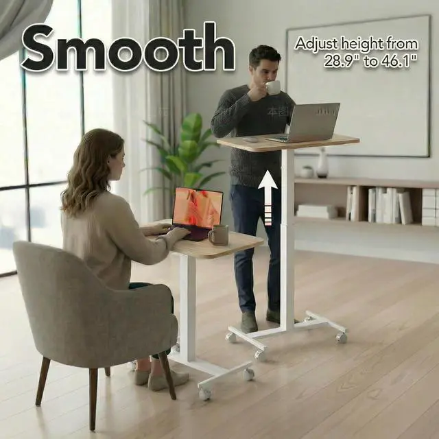 Sit Stand Desk: The height of this small standing desk can be freely set between 28.9" to 46.1" , allowing you to effortlessly switch between sitting and standing for a healthier workstyle. Engineered with a robust cold-rolled steel frame, this mobile desk offers a reliable 15kg (33 lbs) weight capacity, confidently supporting your work or study essentials.