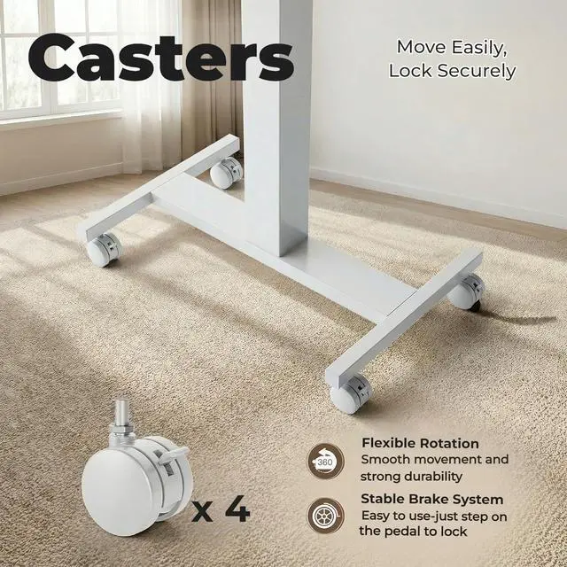 Lockable Mobile Desk: 4 smooth-rolling wheels enable you to move this portable desk anywhere. Simply step on the locks of all 4 wheels to instantly secure the entire desk in place, ensuring total stability.