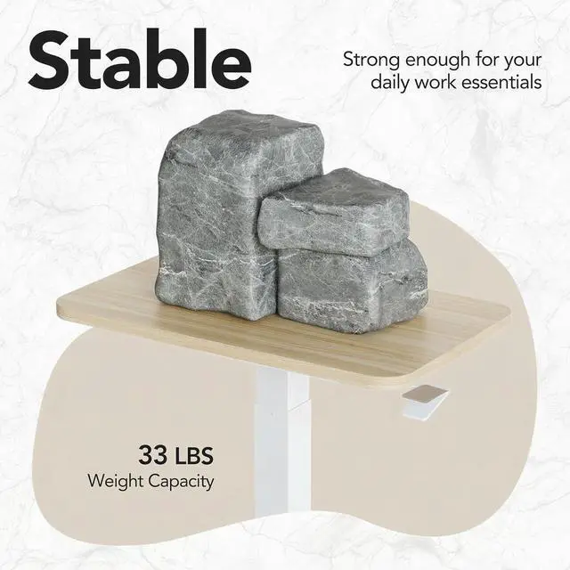 Sturdy & Durable: The scratch-resistant laminate desktop is easy to clean. Supported by a sturdy metal H-shaped base, this adjustable desk boasts a strong 33 lb (15 kg) weight capacity.