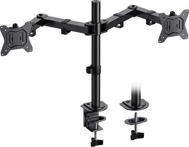 Heavy Steel Fabrication: The dual monitor mount has excellnet sturdiness and stability because it is made of toughened steel, each monitor arm holds up to 22 lbs. One can also tighten or loosen each joint of the dual monitor mount to make movement tight or lose without fear of dropping over time.