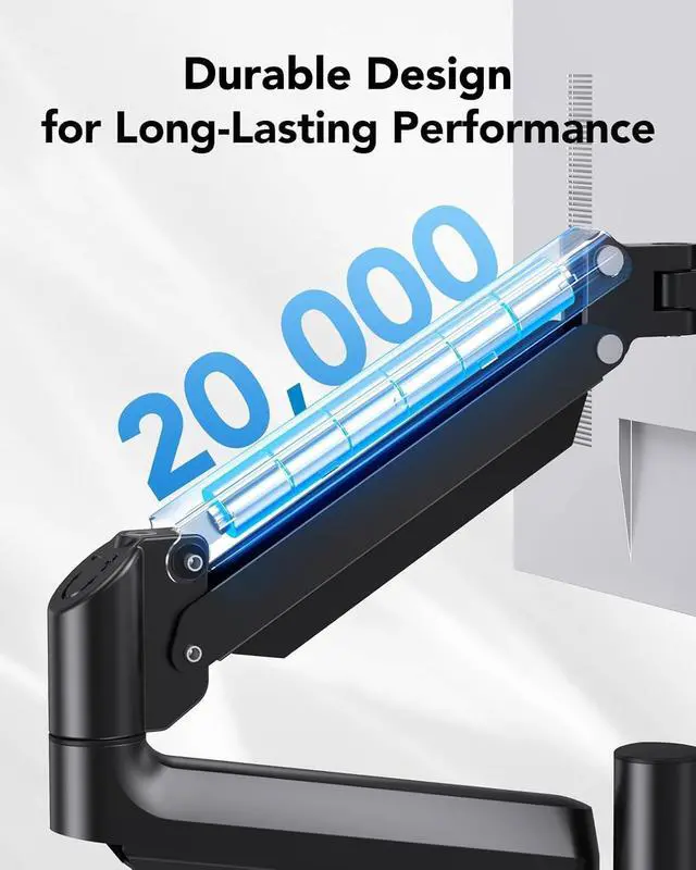 Sturdy & Durable Construction: The arms of this monitor mount have been tested to withstand 20,000 motion cycles to ensure long-lasting performance. The strong steel frame and C-clamp hardware provide excellent stability even during movement or adjustments.