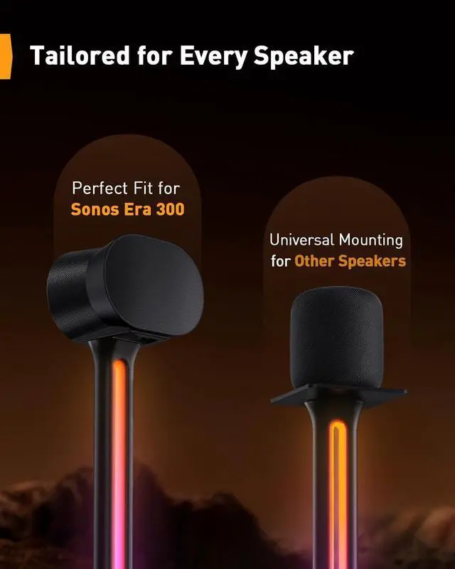 Designed for Sonos Era 300: This speaker stand is custom designed for the Sonos Era 300 speaker system. With a sleek, minimalist look, our stands complement the shape of the speaker while blending in with modern home decor.