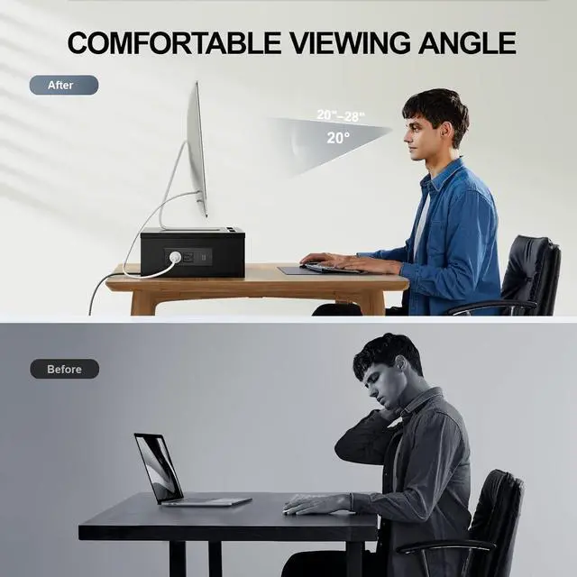 Ergonomic Viewing Angle: Elevate your monitor by 3.9 inches with this ergonomic monitor stand riser. By raising the screen closer to eye level, you can maintain more comfort for your neck, back, and shoulders. Enjoy more productivity and less body strain with our dual monitor riser.