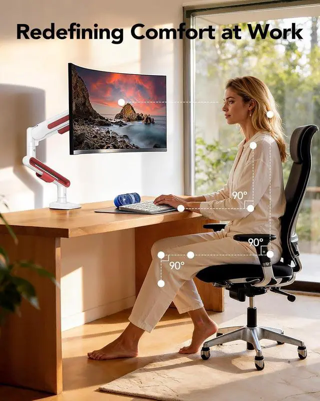 Compatible with Large Screens: The HUANUO ultrawide monitor arm is compatible with most 1340 flat or curved monitors with VESA mounting patterns 75x75mm or 100x100mm. This single monitor mount holds up to 26.4 lbs, making it perfect for large screen displays, enhancing your experience both at work and play.