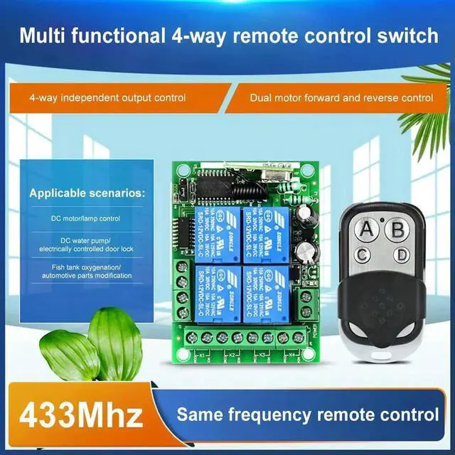 433MHz Wireless RF Remote Control Relay Switch DC12V 4CH Relay Receiver Module Relay Remote Control for Gate Garage Door Light