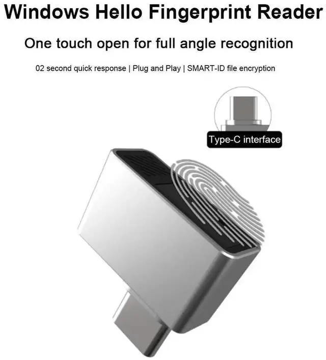 • Type-C Biometric Laptop PC Zinc Alloy Mini USB Fingerprint Reader USB Fingerprint Reader Module Device for Hello