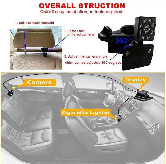 4.3 Inch HD Safety Car Seat Mirror Camera Waterproof Baby Car Mirror 150 Wide View 8LED IR Night Vision Headrest Monitor Display