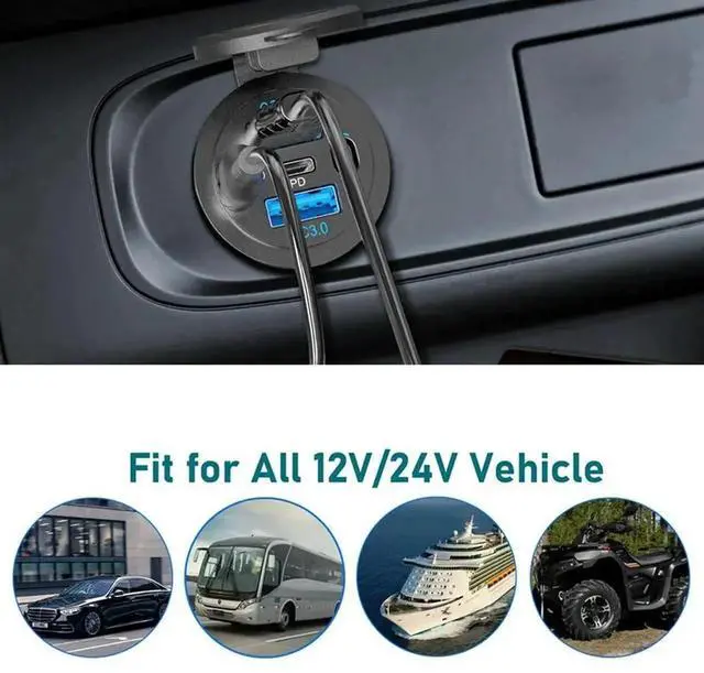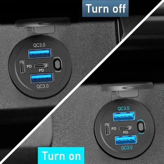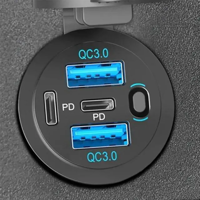 USB C PD Socket 12V Car Charger - Waterproof Installation Box With Switch Panel For Motorhome, Truck, Motorcycle, Boat