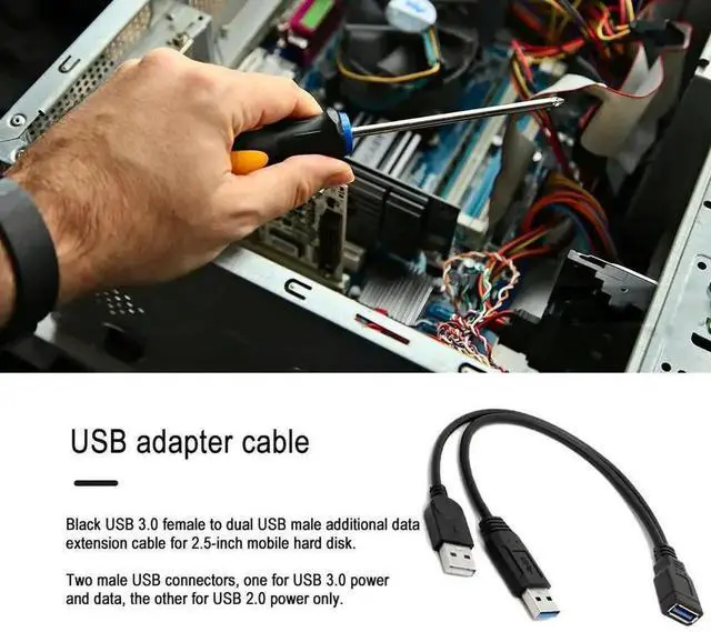 Extra Power Data Y Extension Cable USB 3.0 Female to Dual USB Type A Male Black Power Data Splitter Extension Cable