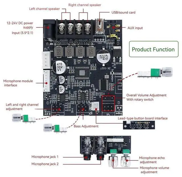 ZK-502T Bluetooth Amplifier Board 50W+50W 2.0Channel TPA3116D2 With Dual Mic Echo/Subwoofer Output Digital Power Amplifier Board