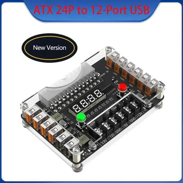 ATX Power Supply Breakout Board and Acrylic Case Kit with 3.3V 5V 12V-12V Output Voltage and 12 Ports USB 3A Maximum Output