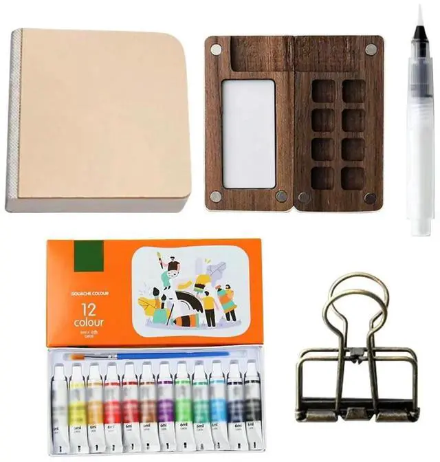 6/15Grid Portable Sketchbook Palette Set Mini Walnut Wood Color Palette Box Travel Watercolor Case Travel Sets for Drawing