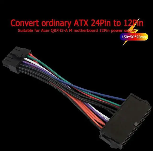 15cm ATX 24 Pin Motherboard Power Cable 12 Pin Converter Cord for Q87H3-AM