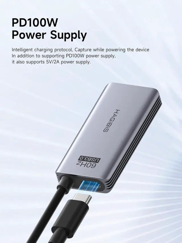 100W High Speed Charging: Hagibis video capture card supports 100W PD fast charging , compatible for Power Delivery 3.0, Qualcomm Quick Charge 5.0 protocol(2.0/3.0/4+). Charging while using, that you don't need to worry about the tablet running out of power while playing games