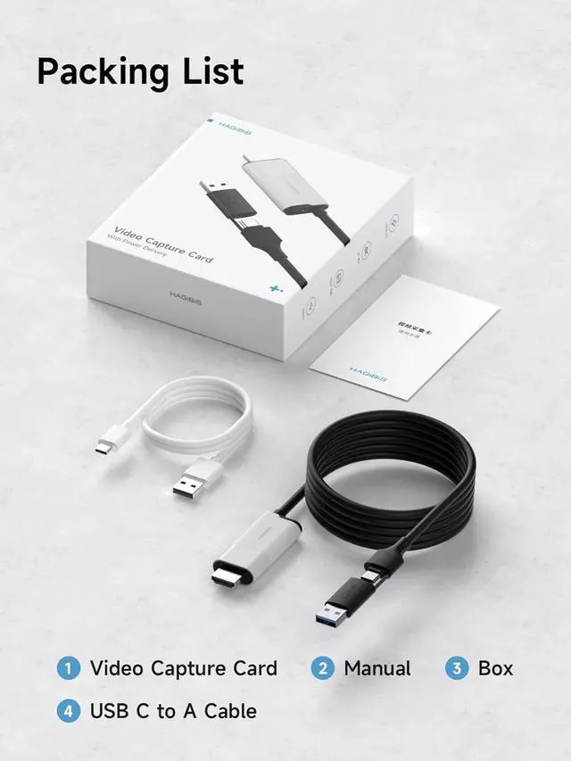 Hagibis USB3.0 Video Capture Card with 100W PD, HDMI to USB A/USB C Capture Cable 1080P@60fps YUY2 MJPEG MS2130 for Quest 3 2 Pro VR Switch2 PS4/5 Live Broadcast, Gaming, Streaming, Recorder