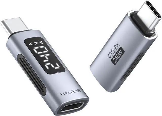 Hagibis LED Display USB C Adapter 240W 40Gbps 8K@60Hz, USB4 Connecter for Thunderbolt 4/3, iPhone 16 15 Pro Max, Current Voltage Fast Charging Monitoring Display Tester Detector (TUA04)
