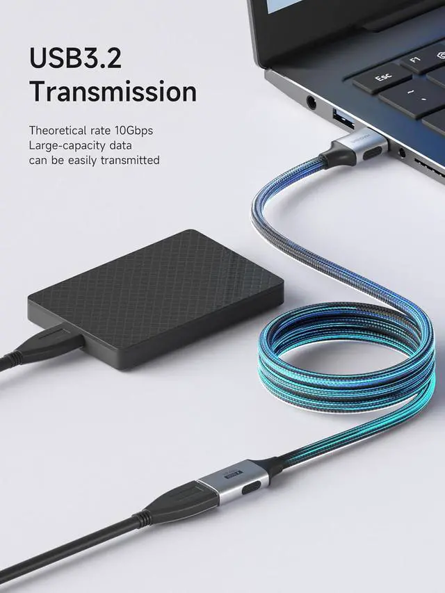10Gbps High-speed Transfer: With data transfer rate up to 10Gbps, Hagibis USB 3.2 Extension Cable is 20x faster than USB2.0 (480 Mbps), backs up your huge files in seconds and ensures fast charging&data syncing. It is also backward compatible with USB 3.1, 3.0, 2.0, 1.1, 1.0 standard devices