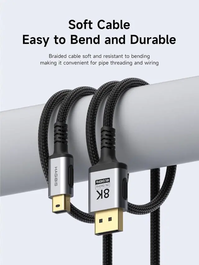True 8K More Clear: Hagibis Mini DP to DP Cable with a resolution of 7680*4320, it has a clarity four times that of 4K and a resolution 4.3 times that of the human eye, restoring the true nature of everything in the world