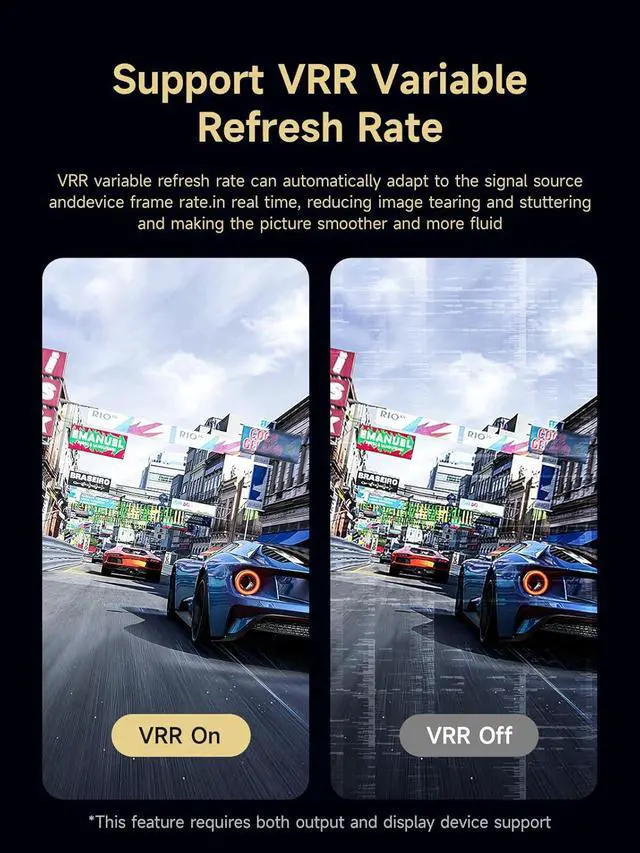 Support VRR Variable Refresh Rate: VRR variable refresh rate can automatically adapt to the signal source and device frame rate in real time, reducing image tearing and stuttering, and making the picture smoother and more fluid. Hagibis Mini DP to DP cable is equipped with variable refresh rate (VRR) and Auto Low Latency Mode (ALLM) technologies. The picture is smooth and fluid, with no tearing or lag