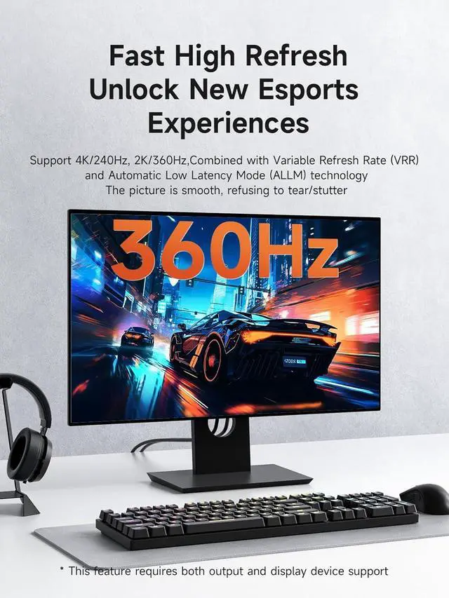 High Refresh Rate: Hagibis Mini DP to DP Cable offers a gamer-friendly refresh-rate with support for (4K@240Hz, 2K@360Hz) and delivers high-resolution up to 8K (7680x4320@60Hz), making it an optimal choice for a smoother, seamless gaming experience