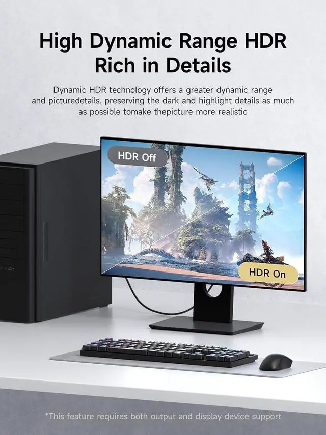 Support VRR Variable Refresh Rate: VRR variable refresh rate can automatically adapt to the signal source and device frame rate in real time, reducing image tearing and stuttering, and making the picture smoother and more fluid. Hagibis Mini DP to DP cable is equipped with variable refresh rate (VRR) and Auto Low Latency Mode (ALLM) technologies. The picture is smooth and fluid, with no tearing or lag