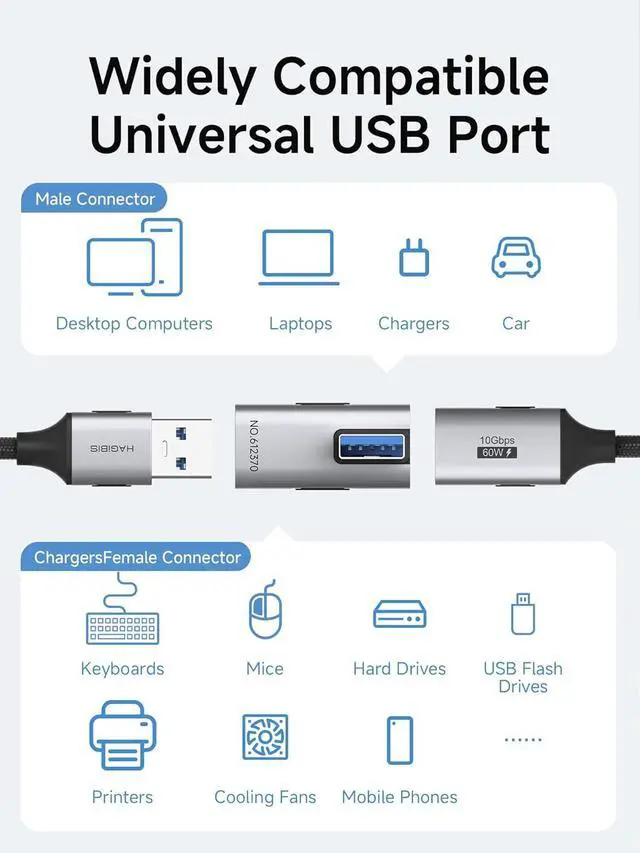 60W High Power: Hagibis USB 3.2 male and female adapter supports simultaneous charging and data transfer. Support 10Gbps data transfer and max 20V/3A fast charging, the device enables faster charging performance