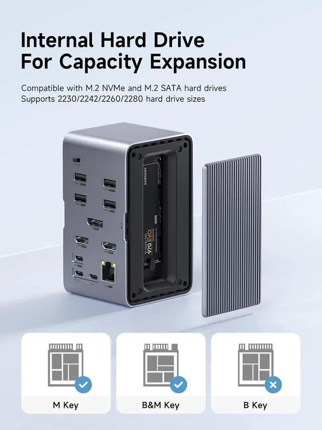 8K@30Hz Multi-Screen Entension: External 3 monitors at the same time, support Mirror Mode and Extended Mode. USB-C(A) is the main dock interface, can control all the interfaces except the right DP and HDMI ports. USB-C(B) can only control the right DP and HDMI ports. *Tip: Apple M1 chip and M2 chip does not support Multi-Screen, can only expand to one external screen, but M1 Pro and M1 Max chips are not limited