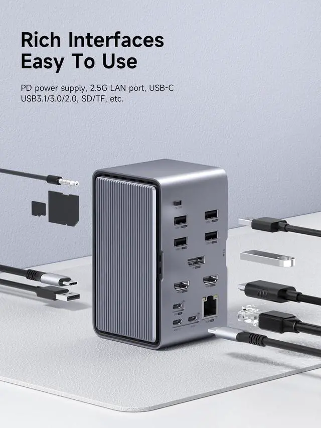 High-Speed and Stable Wired Ethernet: This USB C dual monitor laptop docking station is equipped with an RJ-45 2.5Gigabit Ethernet Network Port definitely provides stable and faster network connection, automatically adapts to 10M/100M/1000Mbps/2500Mbps network transmission. NOT more wait for streaming movies, downloading large files or playing games.